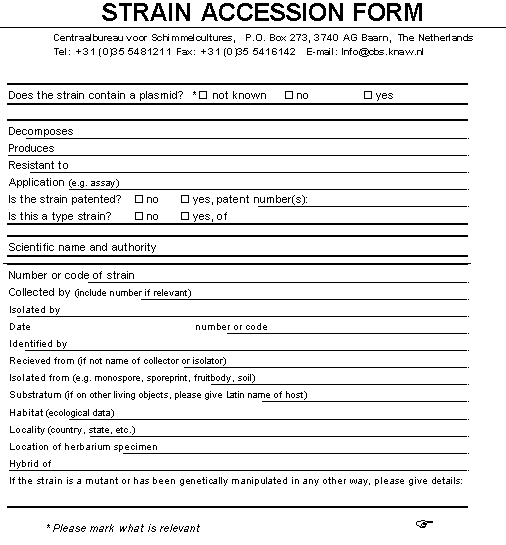 Guidelines prepared for CABRI by DSMZ, CBS and BCCM, 17 May 1998 Page layout by CERDIC Copyright CABRI, 1998