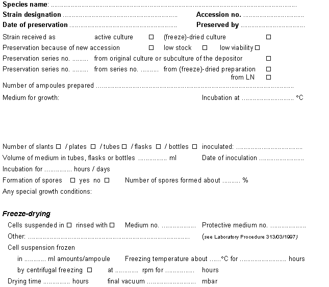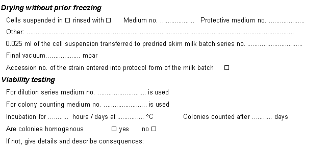 LABORATORY PROCEDURES FOR MICROORGANISMS Appendix M/1998/3.00 Appendix 5.08.2 Protocol form: (Freeze-)drying of microorganisms